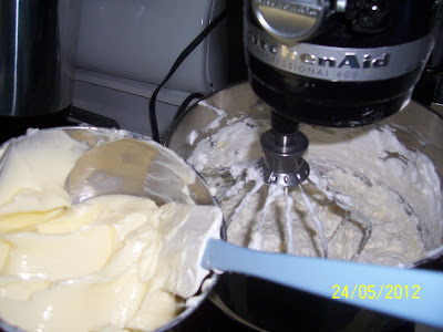 Eggwhites to fluffy clouds. I then stabilized them with sugar-water boiled to the hard candy stage.